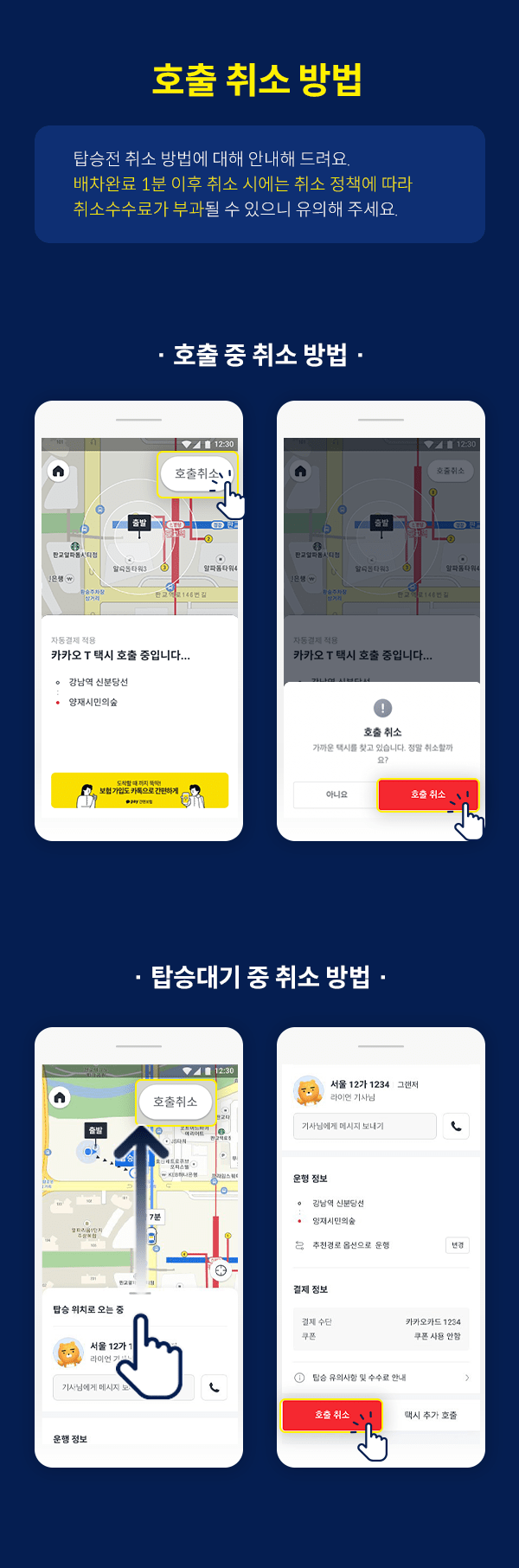 - 배차 완료 후 취소 시 5,000원의 수수료 부과