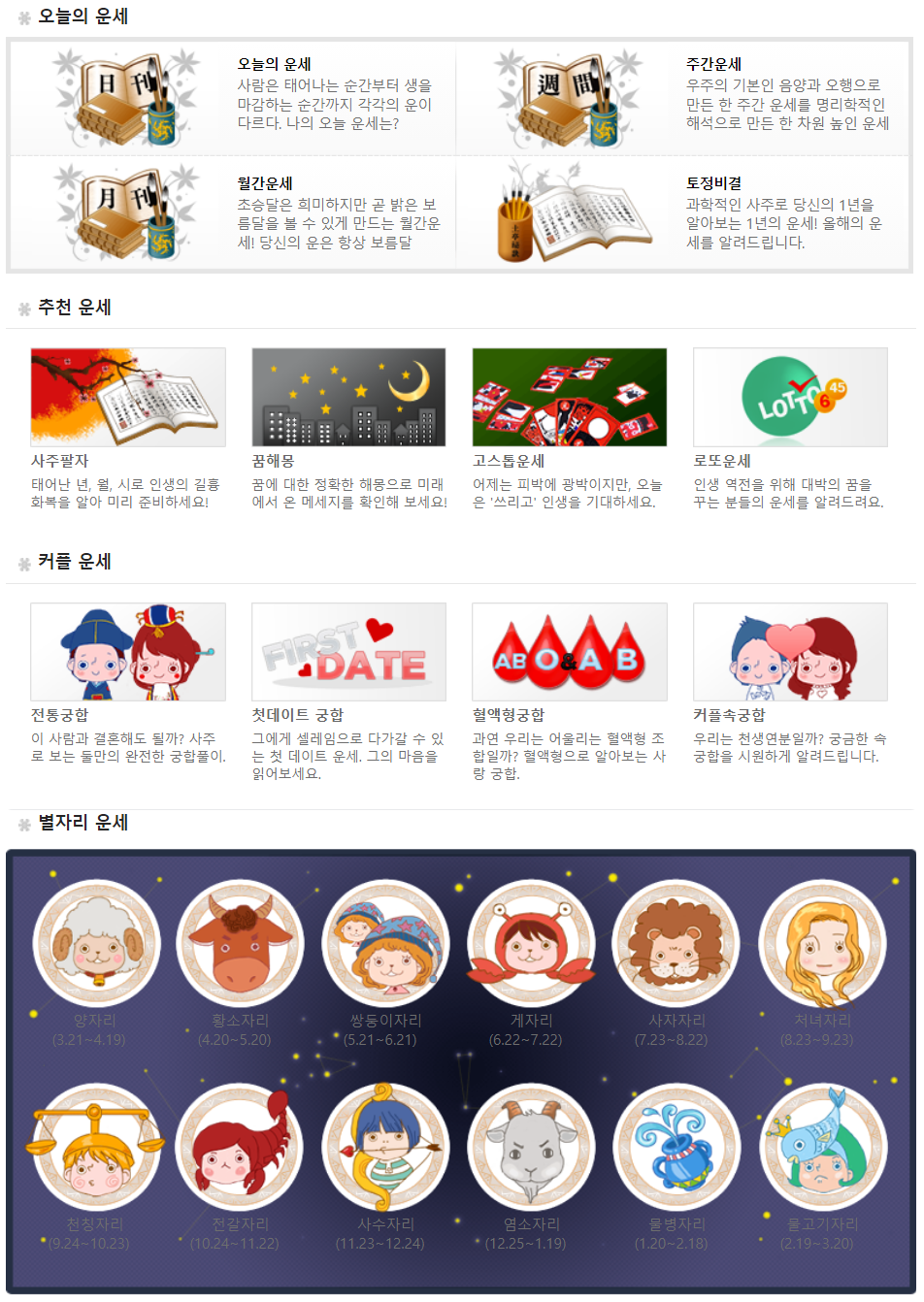 주요 무료 운세 사이트 특징